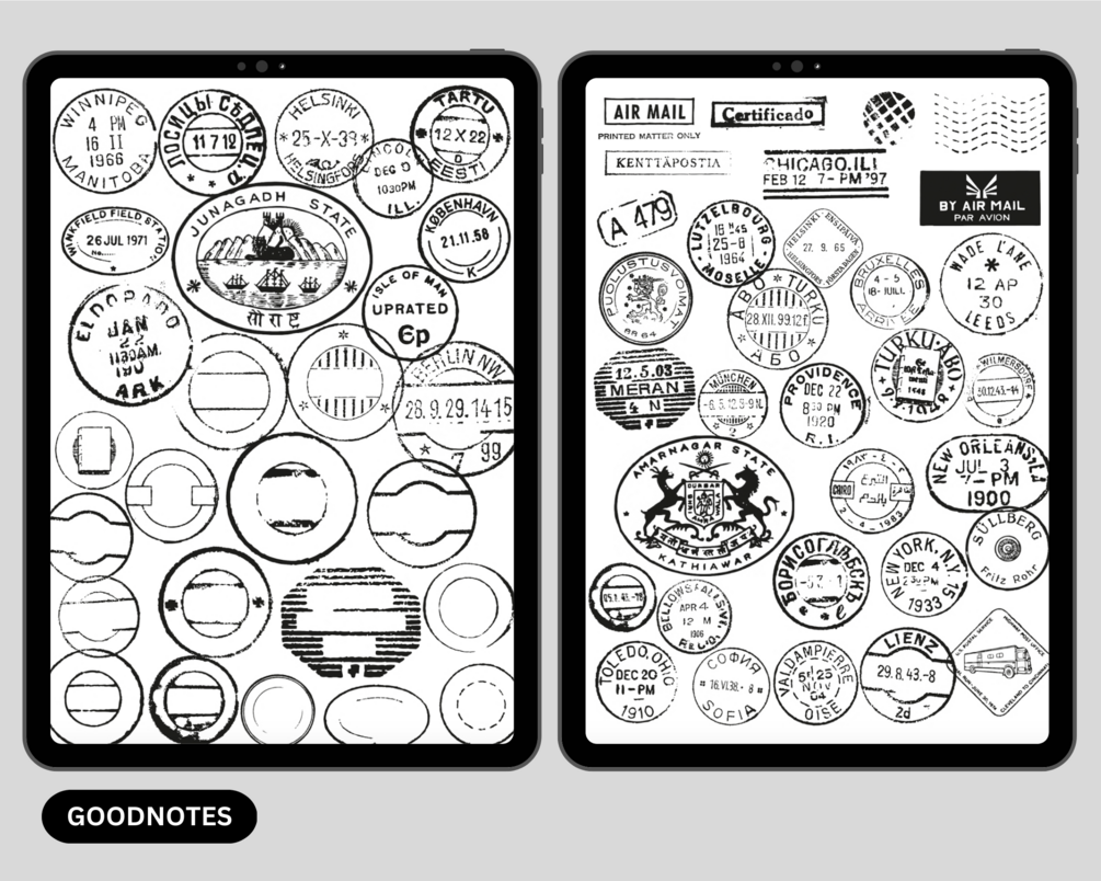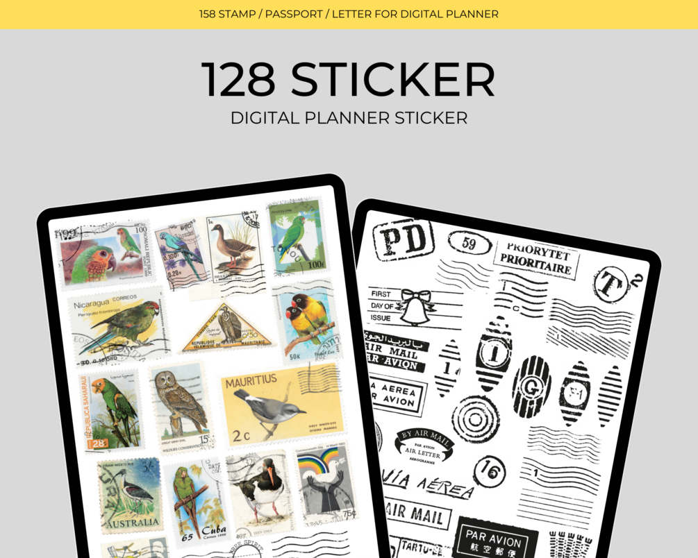 128 Digital Stamps, Passport, Letter Stickers | Digital Stickers | Png Stickers | Goodnotes Planner | Digital Sticker Kit | Instant Download